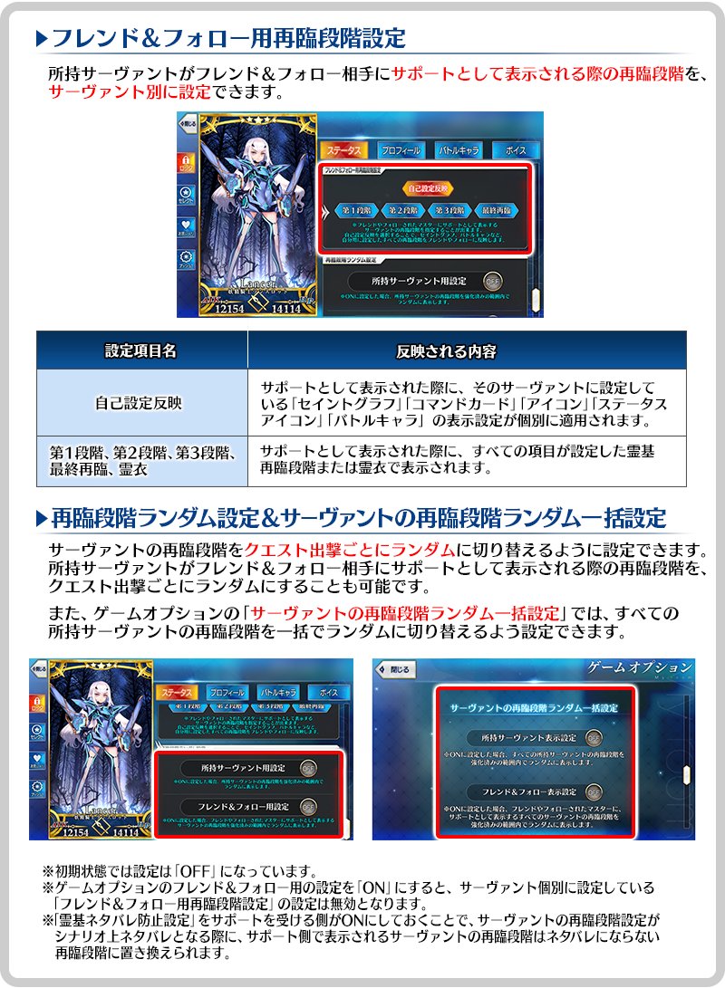 ট ইট র 公式 Fate Grand Order カルデア広報局より Tips フレンド フォロー相手にサポートとして表示される際のサーヴァントの再臨段階は サーヴァントごとに設定することが可能です サポートサーヴァントを特定の再臨段階で使ってほしい場合などに